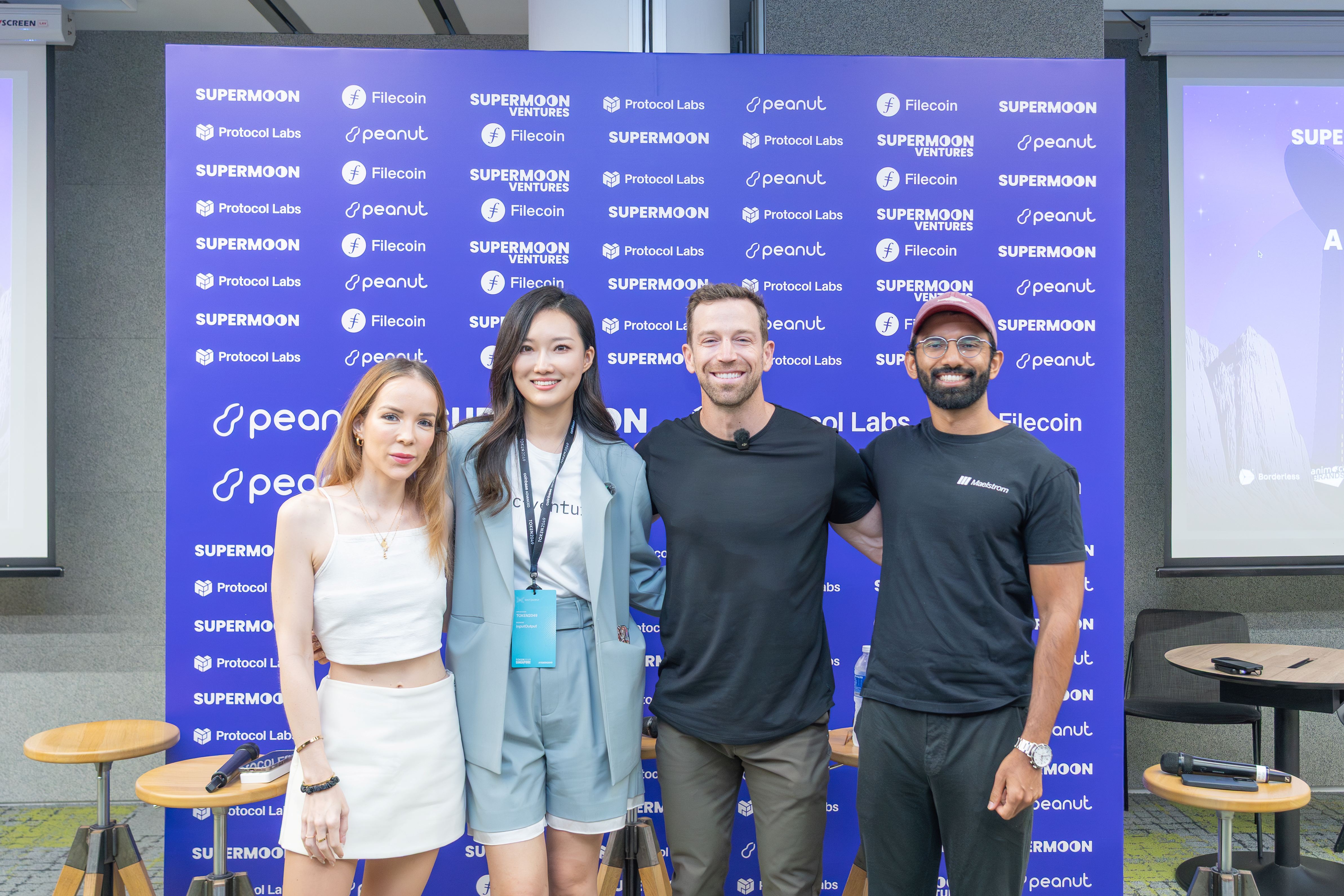 Beyond Startup Day, Supermoon’s Co-Founder Elena Obukhova was also selected to speak at other events during Token2049. This included a fireside chat at Multichain Day by Wrapped with Mathieu Baudet, CEO of Linera, and moderating the “Betting on Decentralized Intelligence” panel at Open Intelligence Day by Gradient and Pantera, featuring Nihal Maunder (Pantera), Kuleen (Solana AI), and Ben Lakoff (Bankless Ventures).